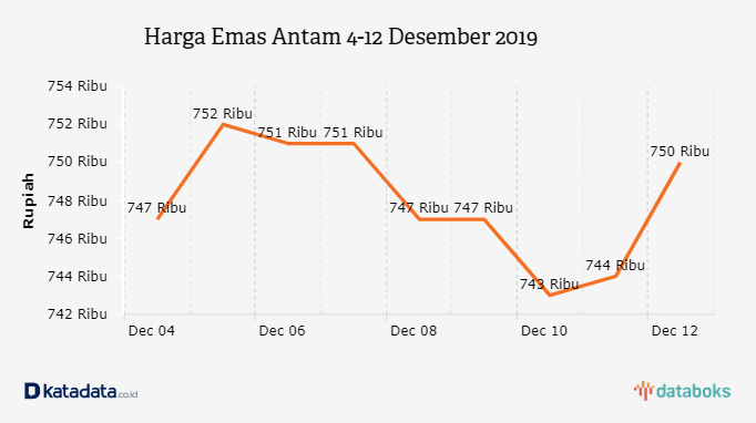 Harga logam mulia (emas) PT Aneka Tambang Tbk 0,8% menjadi Rp 750.000 per gram.