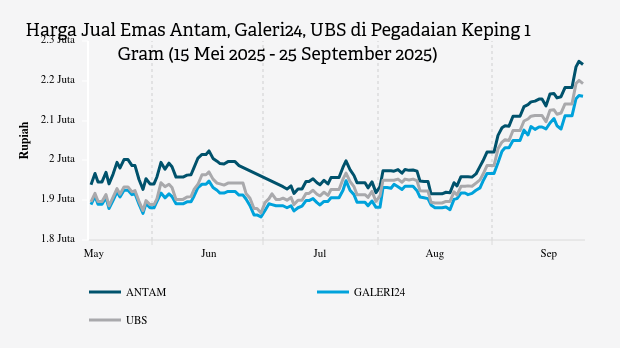 Harga Jual Emas Antam, Galeri24, UBS di Pegadaian Keping 1 Gram (15 Mei 2025 - 25 September 2025)