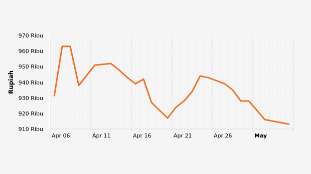 Harga emas (logam mulia) PT Aneka Tambang Tbk pada Selasa, (5/5) turun Rp 1.000 menjadi seharga Rp 913.000 per gram. Sementara harga jual kembali (buyback) juga turun Rp 1.000 per gram menjadi seharga Rp 812.000 per gram.