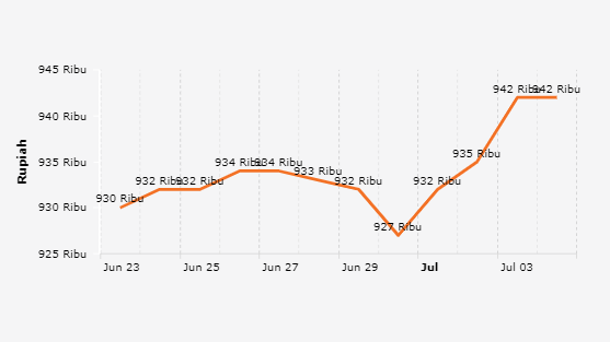 Harga Emas Antam 1 Gram pada Jumat, 02 Jul 2021 ditransaksikan dengan harga Rp. 935,000 atau naik 1.6 persen dibandingkan 14 hari lalu. Kondisi saat ini masih sama dibanding beberapa pekan terakhir yang cenderung bergerak naik turun. Sebelumnya, Harga Emas Antam 1 Gram pernah berada dititik tertinggi pada Senin, 31 Mei 2021 di seharga Rp. 965,000 Harga Emas Antam 1 Gram diperjualbelikan naik dengan selisih Rp. 3,000 dengan hari sebelumnya. Selain kelompok 1 Gram beberapa Harga Emas Antam lain diperjualbelikan :