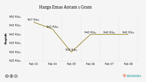 Logam mulia (emas) PT Aneka Tambang Tbk pada Selasa, (9/2) naik Rp 3.000 per gram menjadi seharga Rp 943.000 per gram. Sementara harga jual juga turun Rp 4.000 per gram menjadi seharga Rp 823.000 per gram.
