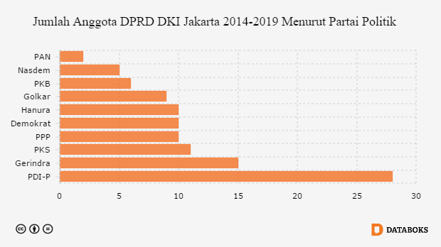 PDI Perjuangan (PDI-P) menguasai lebih dari seperempat jumlah anggota Dewan Perwakilan Rakyat Daerah DKI Jakarta periode 2014-2019. Menurut situs resmi DPRD DKI Jakarta, anggota DPRD DKI Jakarta yang berasal dari PDI-P berjumlah 28 dari total keseluruhan 106 orang. Di posisi kedua berasal dari Partai Gerinda berjumlah 15 orang. Di urutan ketiga yaitu Partai Keadilan Sejahtera dengan jumlah anggota 10 orang.