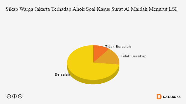 Dari 89,3 persen warga Jakarta yang mengetahui kasus dugaan penistaan agama yang dilakukan oleh Ahok, sebanyak 73,20 persen menanggap Ahok bersalah. Berdasarkan survei Lingkaran Survei Indonesia (LSI) hampir di semua segmen masyarakat menyatakan bahwa penyataan Ahok perihal surat Al Maidah adalah sebuah kesalahan. Baik laki-laki maupun perempuan, berpendidikan tinggi maupun rendah, ekonomi mapan maupun “wong cilik”, berpandangan sama.