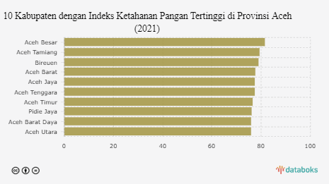 Berdasarkan data Badan Pangan Nasional (Bapanas), dari 18 kabupaten yang berada di Provinsi Aceh, Kabupaten Aceh Besar memiliki ketahanan pangan tertinggi.