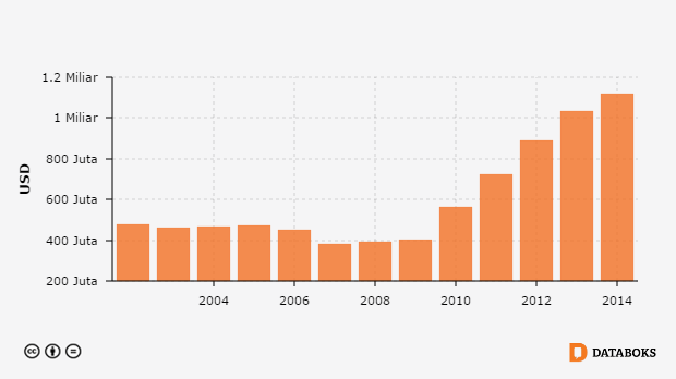 Nilai Ekspor Alas Kaki ke Amerika Serikat 2002 - 2014