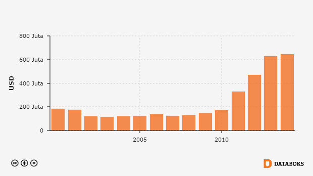 Nilai Ekspor Pakaian Jadi ke Jepang 2000 - 2014