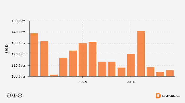 Nilai Ekspor Pakaian Jadi ke Perancis 2000 - 2014