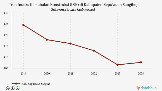 Indeks Kemahalan Konstruksi (IKK) Kabupaten Kepulauan Sangihe, Sulawesi Utara sebesar 107,88 poin pada 2024.