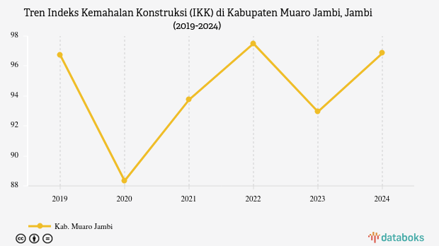 Indeks Kemahalan Konstruksi (IKK) Kabupaten Muaro Jambi, Jambi sebesar 96,85 poin pada 2024.