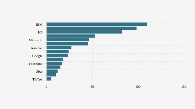 Adapun, sejumlah korporasi yang bergerak di bidang media sosial masih tergolong muda. Facebook tercatat baru berusia 17 tahun, Twitter 15 tahun, Snapchat 10 tahun, dan TikTok 5 tahun. Meski demikian, pamor mereka tak kalah dengan perusahaan teknologi yang lebih senior.
