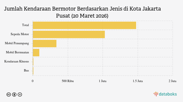 Pada Maret 2026, Kota Jakarta Pusat memiliki 1,48 juta unit kendaraan bermotor menurut data ERI Korlantas Polri.