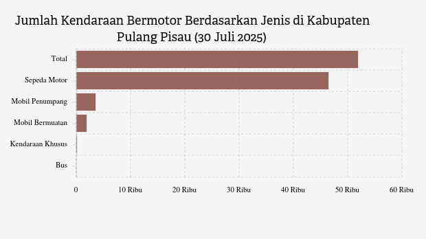 Jumlah Kendaraan Bermotor di Kabupaten Pulang Pisau (30 Juli 2025)