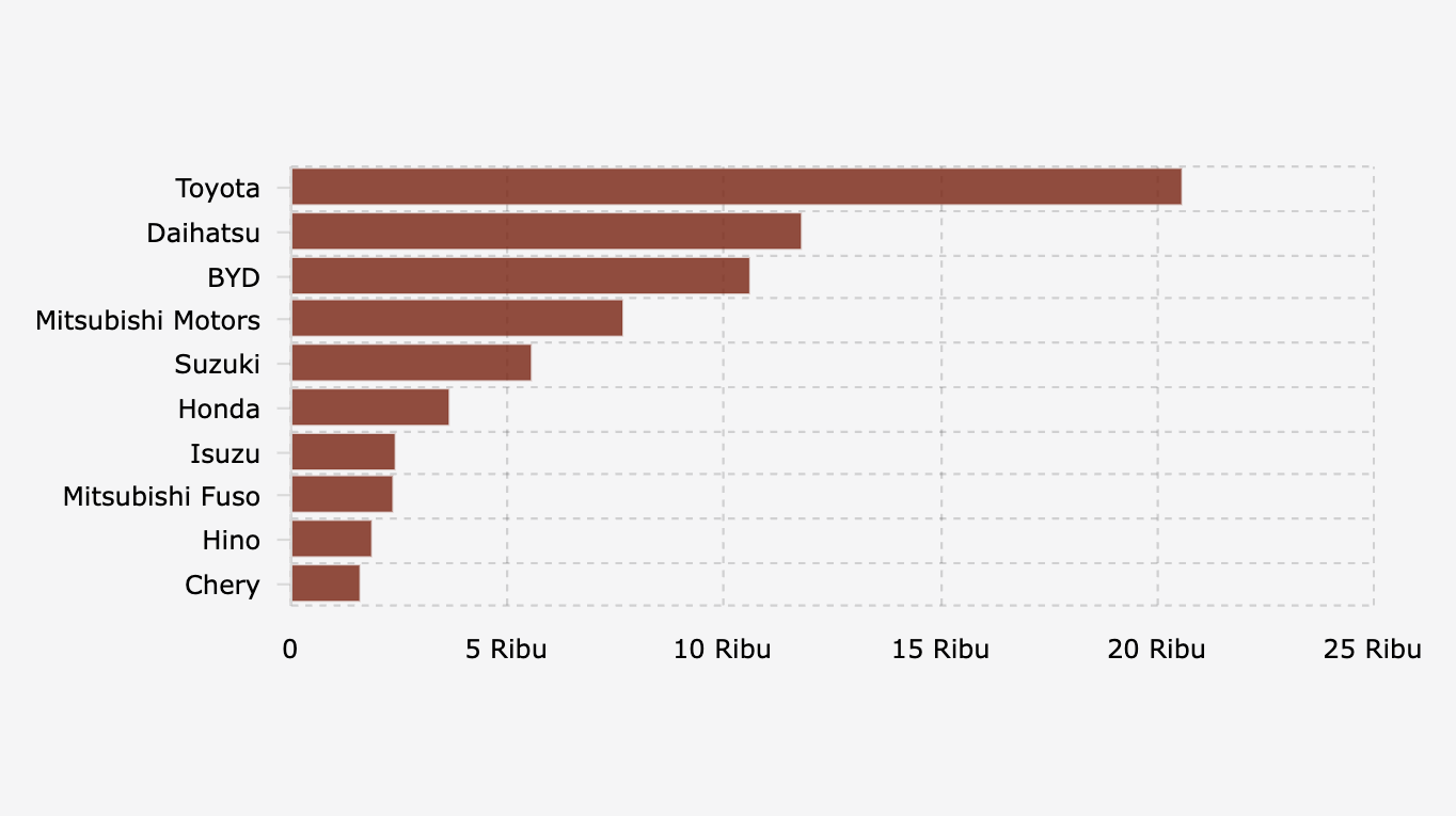 Data PT Astra International Tbk mengungkap, ada empat jenis mobil buatannya yang paling laris di pasar Indonesia. Toyota dan Lexus konsisten menempati urutan puncak berbulan-bulan.