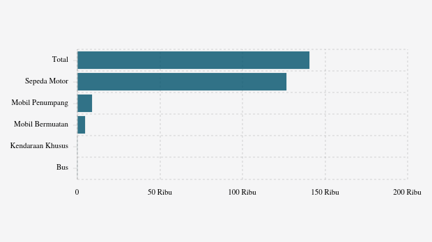 Jumlah kendaraan bermotor di Kab. Pesawaran mencapai 140,62 ribu unit per Agt 2025, didominasi sepeda motor (126,72 ribu unit). Data dari ERI Korlantas Polri.