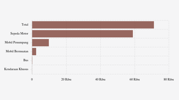 Jumlah kendaraan bermotor di Kota Pariaman, Sumatera Barat mencapai 71,25 ribu unit pada Mei 2025, menurut data resmi Polri.