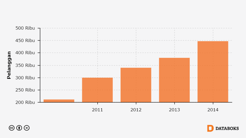 Jumlah Pelanggan Perusahaan Air Bersih, (total)di Sumatera Selatan 2010 - 2014