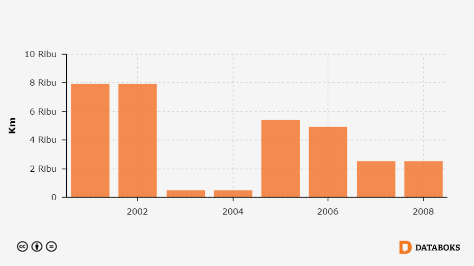 Panjang Jalan Kabupaten dengan Permukaan Aspal di DKI Jakarta 2001 - 2008