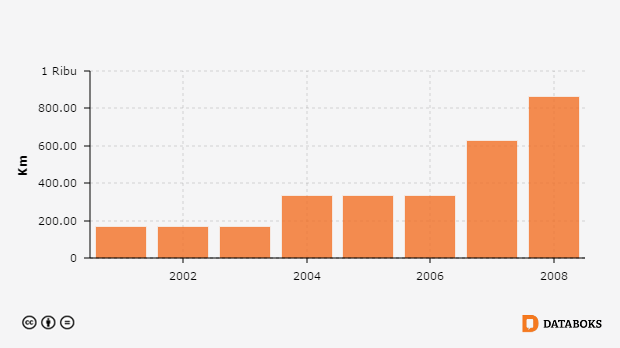 Panjang Jalan Provinsi dengan Permukaan Aspal di Kalimantan Tengah 2001 - 2008