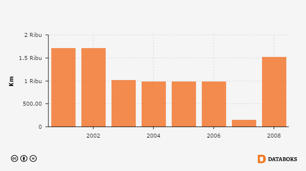 Panjang Jalan Provinsi dengan Permukaan Aspal di Riau 2001 - 2008