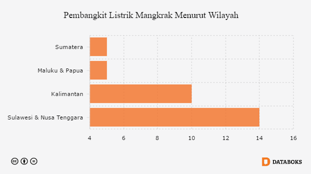 Sulawesi dan Nusa Tenggara menjadi wilayah dengan pembangunan pembangkit listrik yang mangkrak paling banyak. Ada beberapa penyebab yang membuat proyek tersebut terpaksa berhenti di tengah jalan atau tidak selesai sesuai yang ditargetkan antara lain karena enghitungan proyek yang kurang matang dan masalah pasokan bahan bakar.